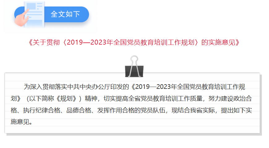 省委辦公廳印發(fā)《關(guān)于貫徹〈2019—2023年全國黨員教育培訓(xùn)工作規(guī)劃〉的實(shí)施意見》