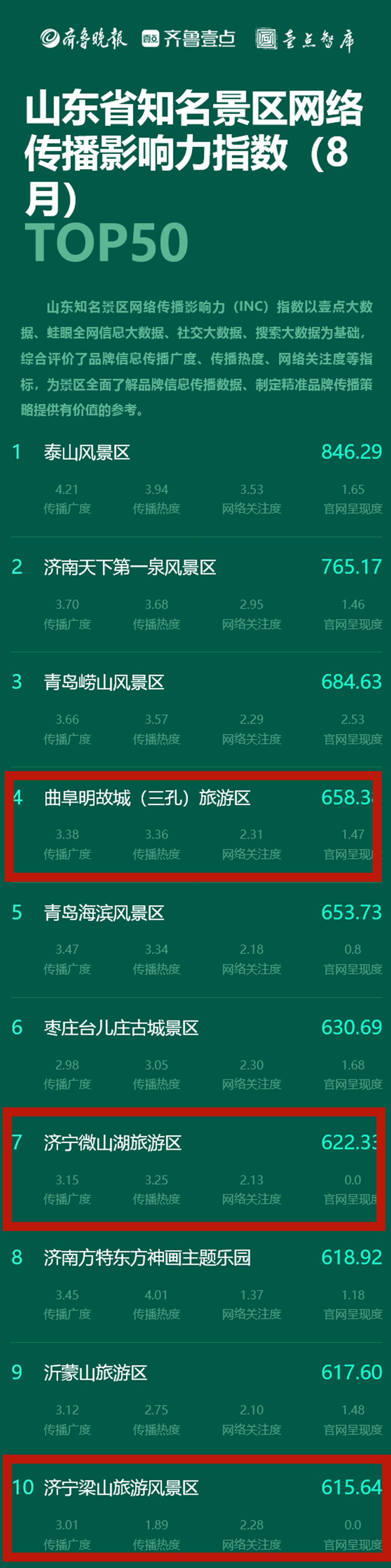 孔子文旅集團(tuán)三家景區(qū)入圍省知名景區(qū)網(wǎng)絡(luò)傳播影響指數(shù)前十名