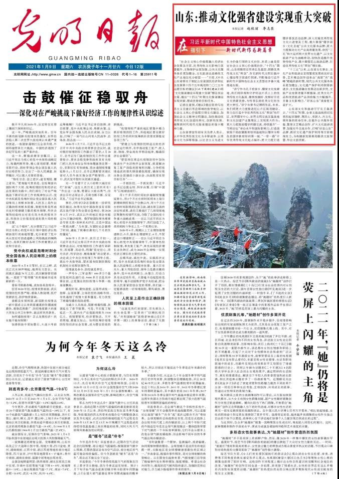 光明日?qǐng)?bào)頭版聚焦山東:推動(dòng)文化強(qiáng)省建設(shè)實(shí)現(xiàn)重大突破