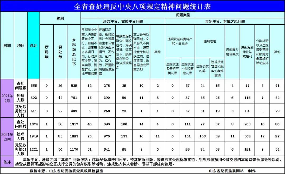 2021年2月全省查處違反中央八項規(guī)定精神問題565起