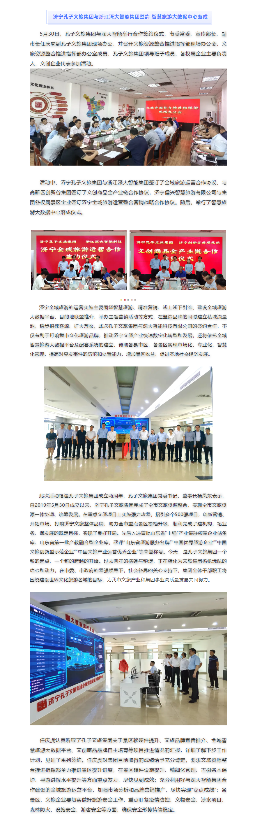 濟寧孔子文旅集團與浙江深大智能簽約 智慧旅游大數(shù)據(jù)中心落成